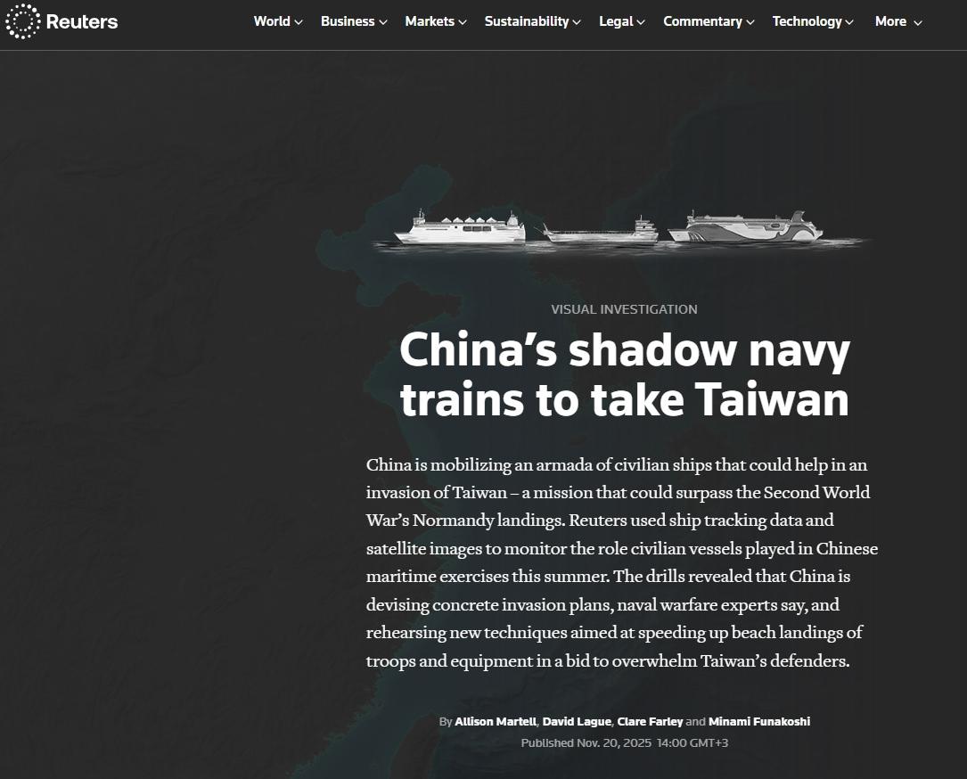 Tayvan, son dönemde Çin’in olası bir işgaline karşı başlattığı tatbikatlarla hazırlıklarını sürdürürken Reuters, dünya gündemine bomba gibi düşen bir analize imza attı. Reuters, 20 Kasım‘da hazırladığı bir analizle Çin, Tayvan’a yönelik olası bir amfibi harekâtı için harekete geçtiğini ve bu kapsamda sivil feribotlar ve güverteli kargo gemilerini askeri kullanıma uygun hale getirmek için çalışmalara başladığını duyurdu.